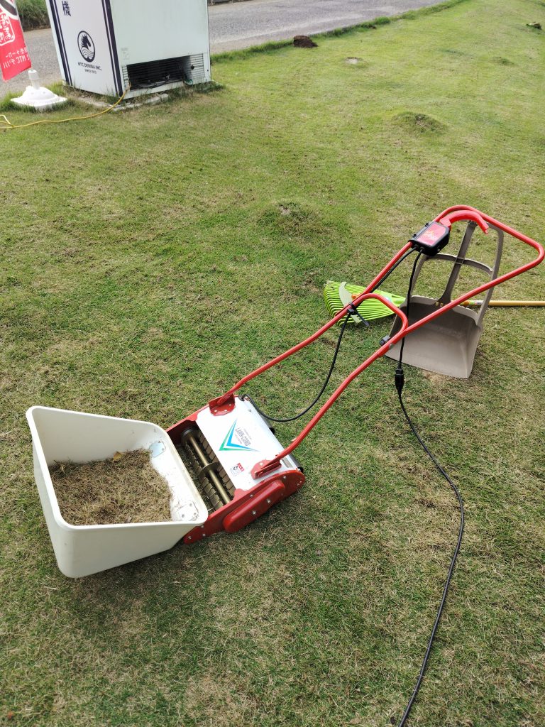 芝生のサッチ取りを実施いたしました。