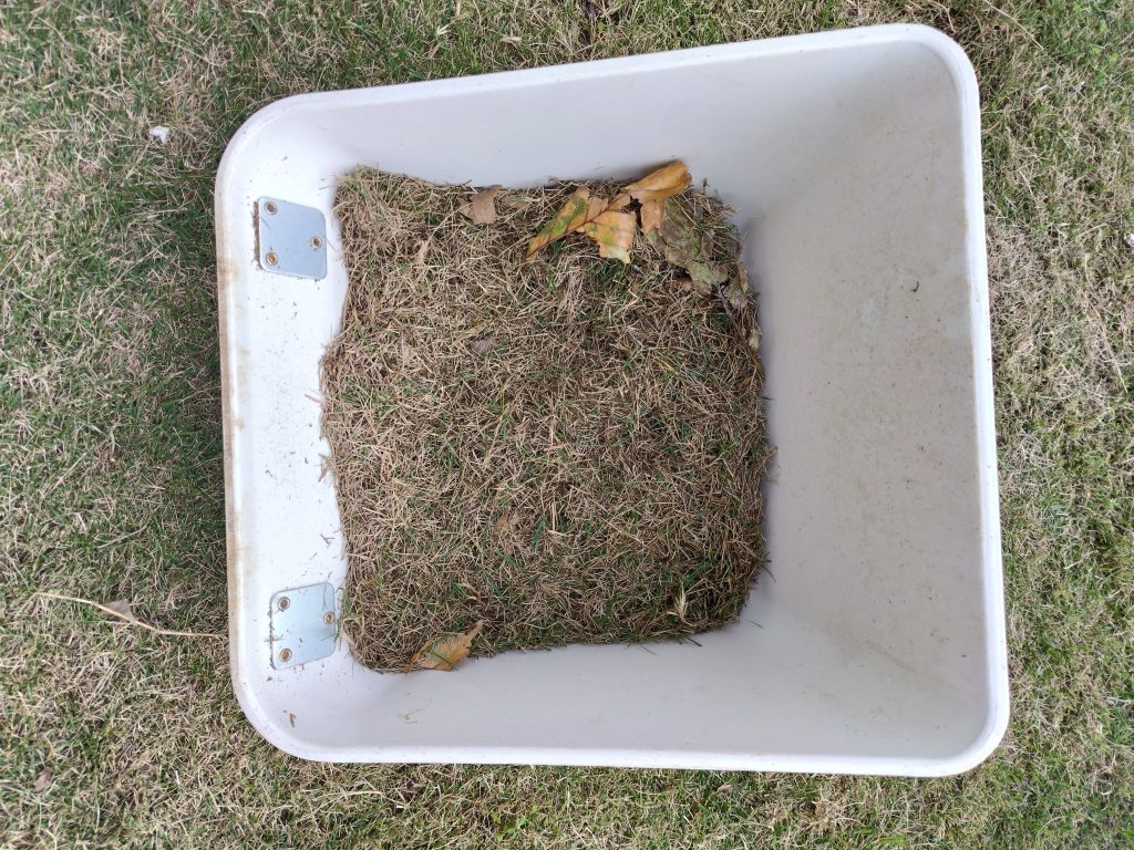 サッチとは芝生の中の、刈り屑や枯れた芝です。放置すると芝生の病床となり枯れてしまいますので、年1、2回 サッチ取りを行ないます。