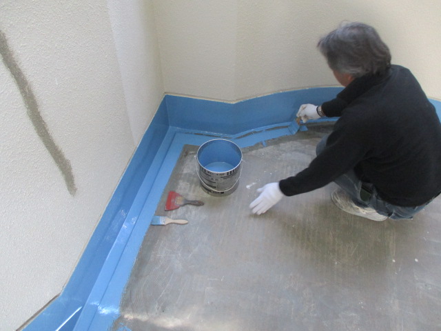 同時に共用廊下の排水溝の防水塗装も見学させていただきました。